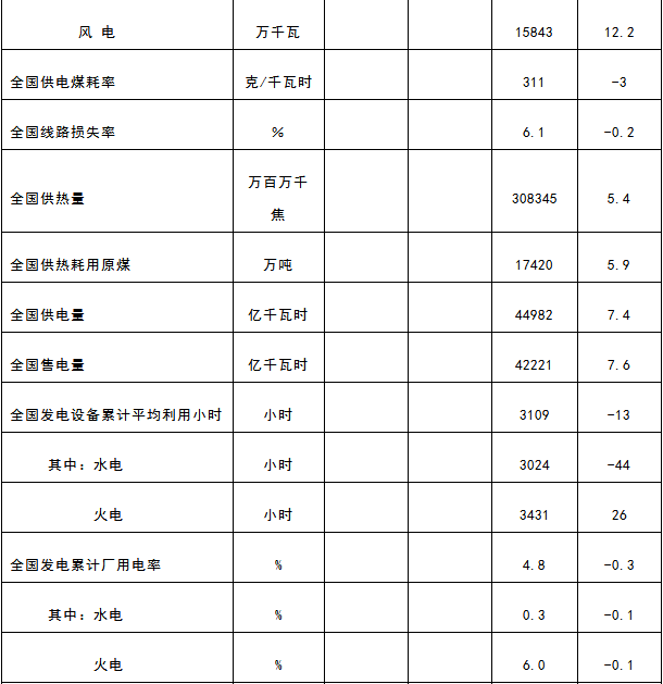 國(guó)家能源局公示:全國(guó)1-10月份電力工業(yè)數(shù)據(jù)表