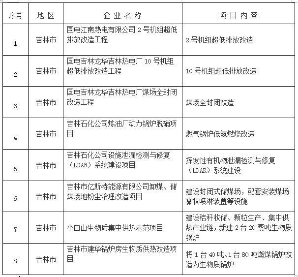 吉林市2017年工業(yè)大氣污染防治項(xiàng)目清單
